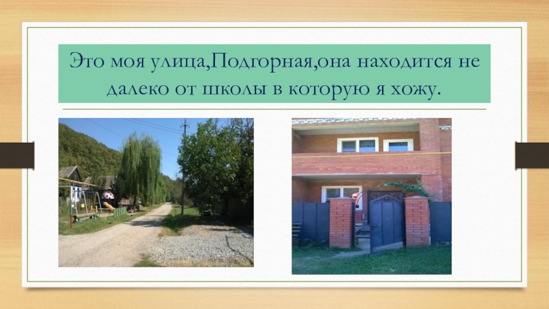 Слайд 7Это моя улица,Подгорная,она находится не далеко от школы в которую я