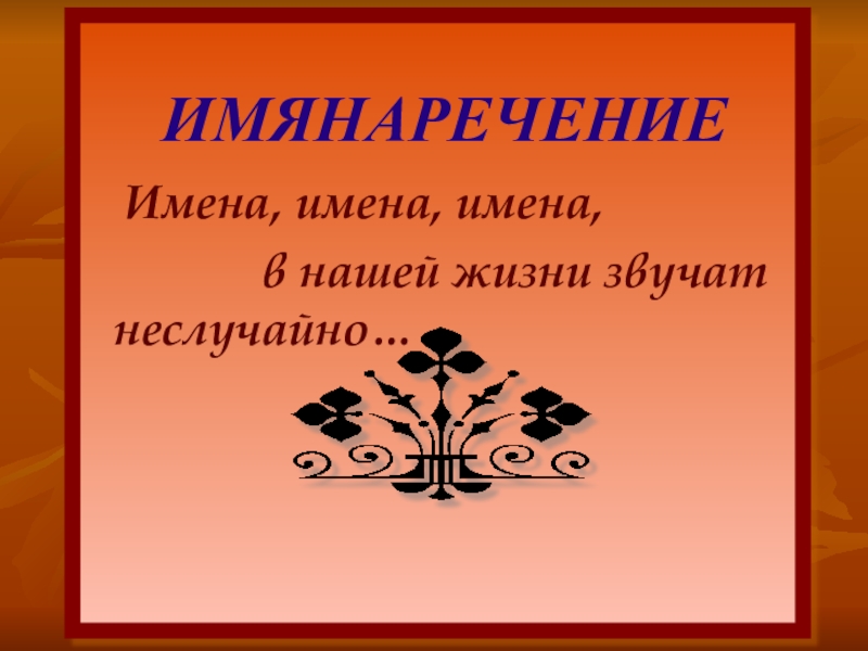 ИМЯНАРЕЧЕНИЕ Имена, имена, имена, в нашей жизни звучат неслучайно…