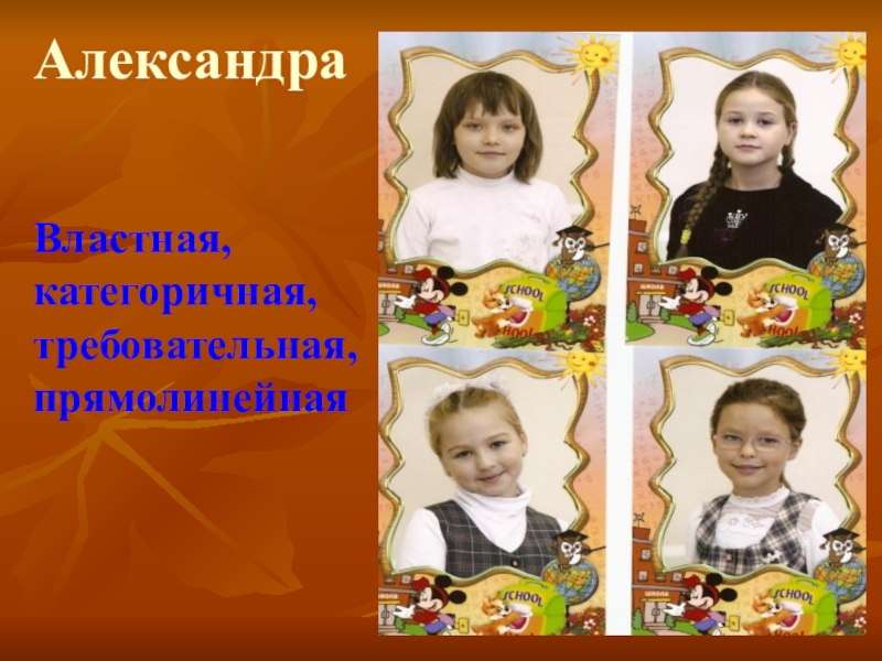Властная, категоричная, требовательная, прямолинейнаяАлександра