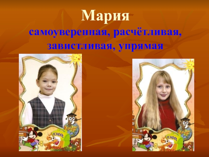 Мариясамоуверенная, расчётливая, завистливая, упрямая