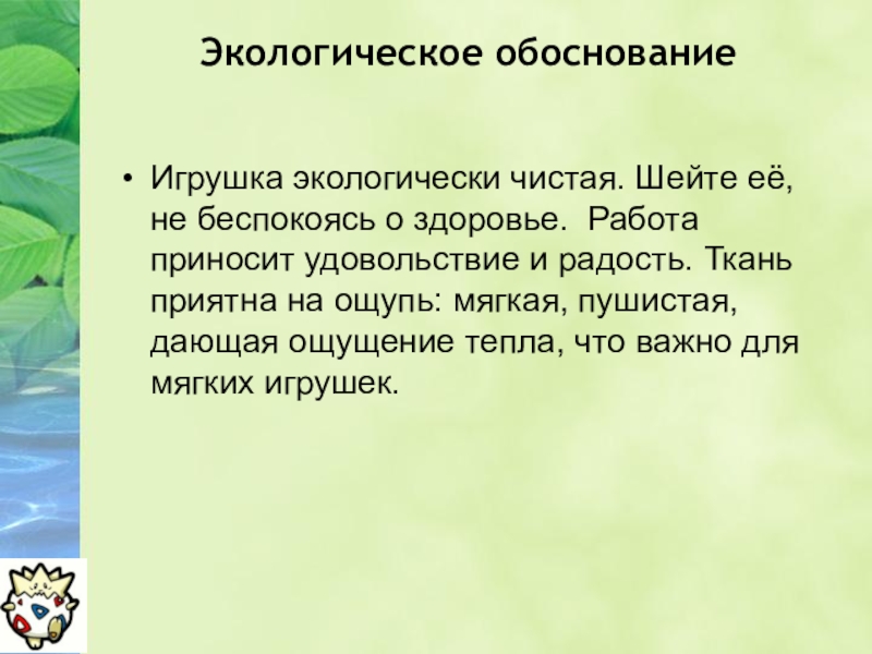 Слайд 16Экологическое обоснование