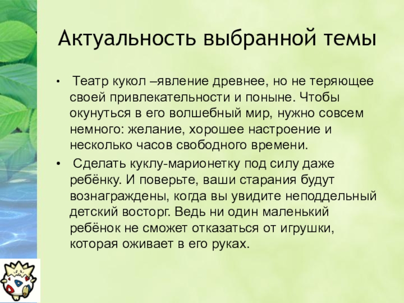 Театр кукол –явление древнее, но не теряющее своей