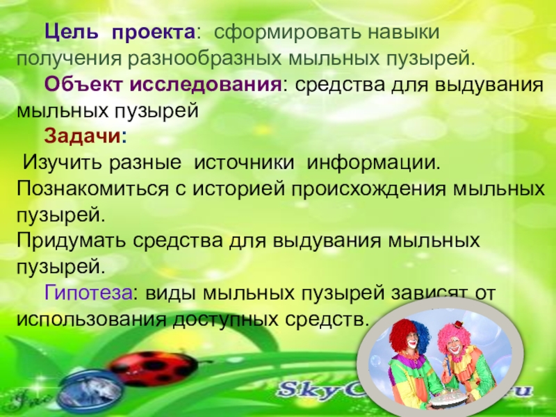Создание средств для выдувания мыльных пузырей.