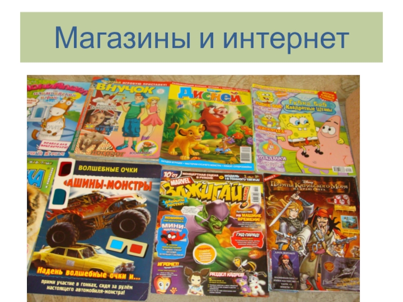 Слайд 7Магазины и интернет