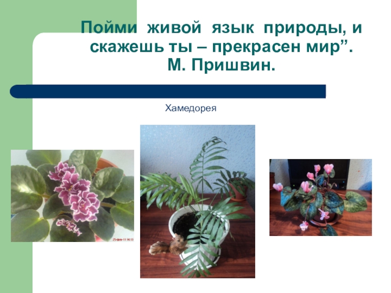 Пойми живой язык природы, и скажешь ты – прекрасен мир”. М. Пришвин.Хамедорея
