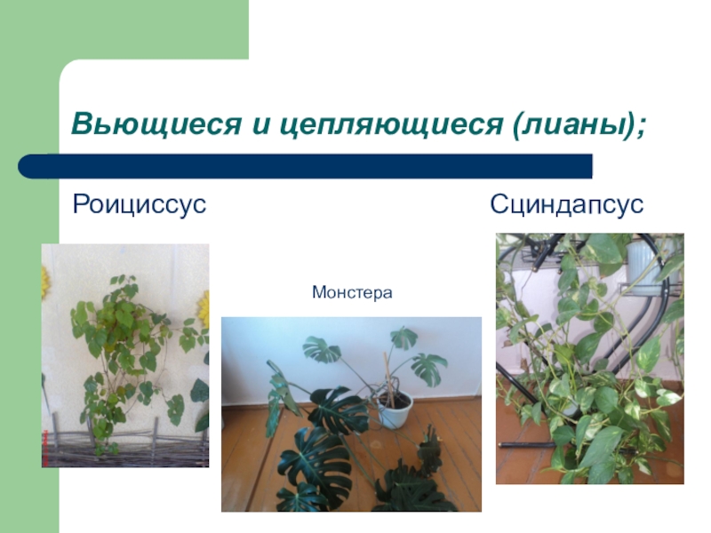 Слайд 14Вьющиеся и цепляющиеся (лианы);