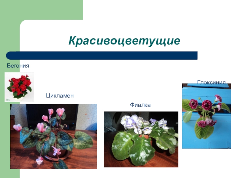 Красивоцветущие ГлоксинияФиалкаЦикламенБегония