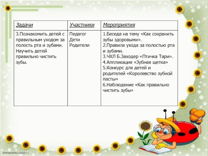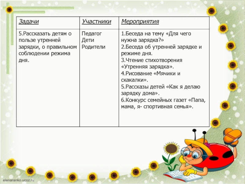 о пользе утренней зарядки, о правильном уходе за полостью рта и зубами, о пользе витаминов.
