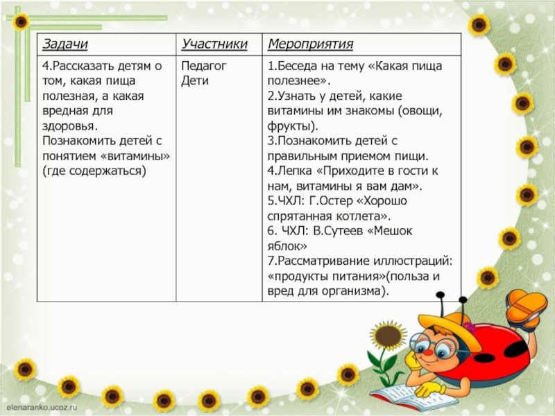3.Приобретение знаний о «вредной» и «полезной» пище.