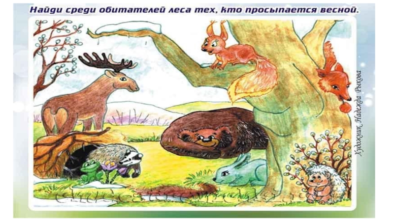 Слайд 9Просыпаются звери, которые всю зиму спали. Они просыпаются похудевшими, начинают искать