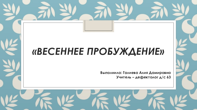 «Весеннее пробуждение» Выполнила: Галиева Алия ДамировнаУчитель – дефектолог д/с 63