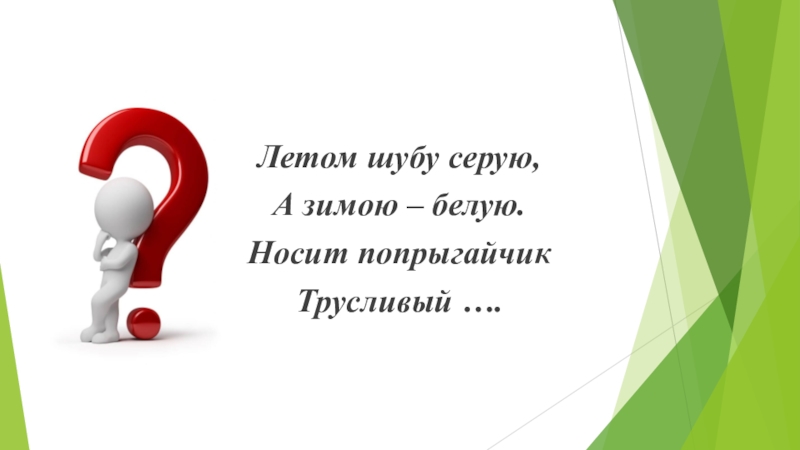 Летом шубу серую,А зимою – белую.Носит попрыгайчикТрусливый ….