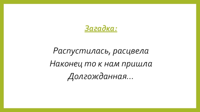 Загадка:Распустилась, расцвелаНаконец то к нам пришлаДолгожданная…