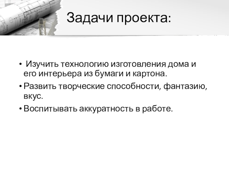 Цель проекта: получение первых архитектурных знаний и навыков.