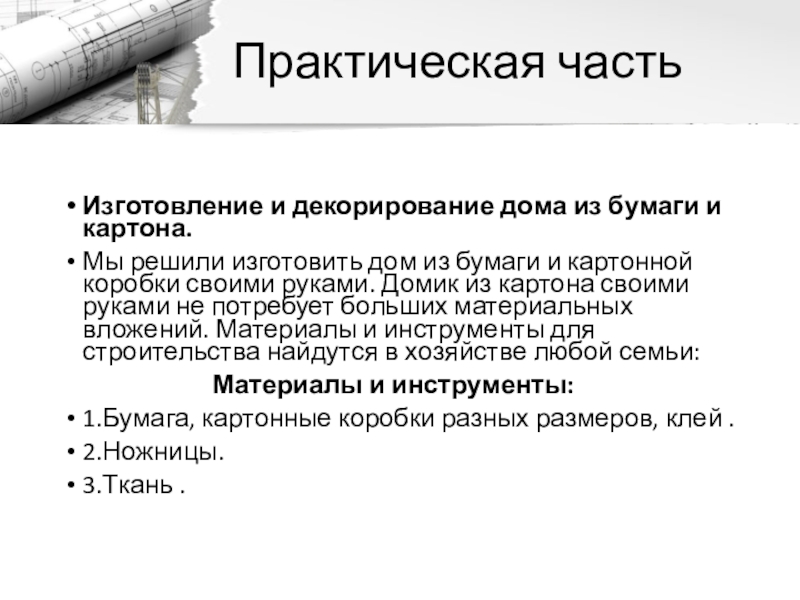 Предмет изучения: особенности изготовления дома из бумаги и картона.