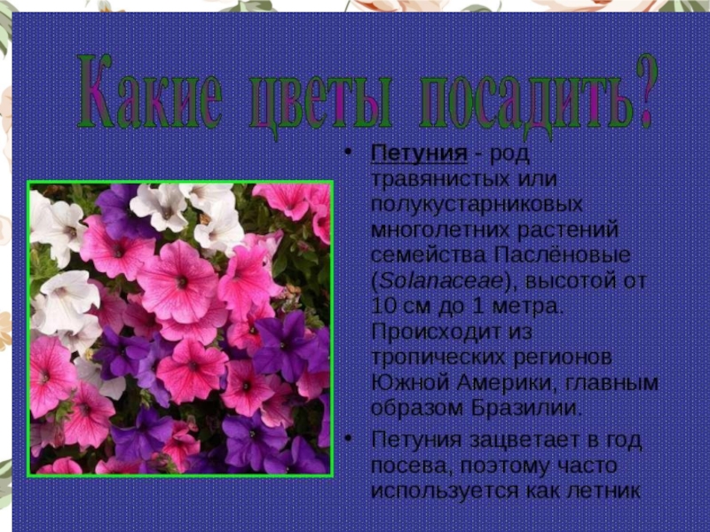 Это сайт презентаций, где можно хранить и обмениваться своими презентациями, докладами, проектами, шаблонами в формате PowerPoint с другими пользователями. Мы помогаем школьникам, студентам, учителям, преподавателям хранить и обмениваться учебными материалами.