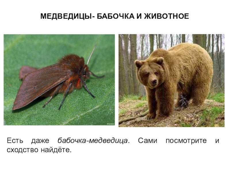 Слайд 15МЕДВЕДИЦЫ- БАБОЧКА И ЖИВОТНОЕ
