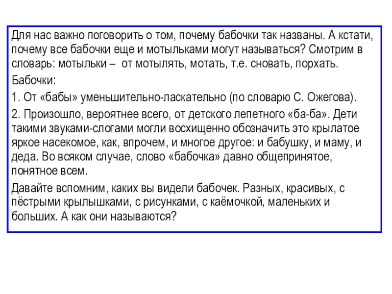 Слайд 30Для нас важно поговорить о том, почему бабочки так названы. А