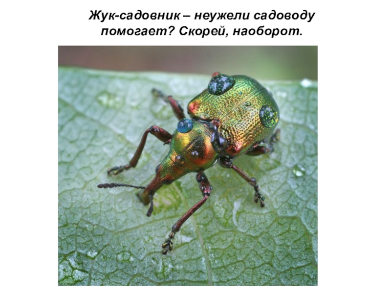 Слайд 28Жук-садовник – неужели садоводу помогает? Скорей, наоборот.