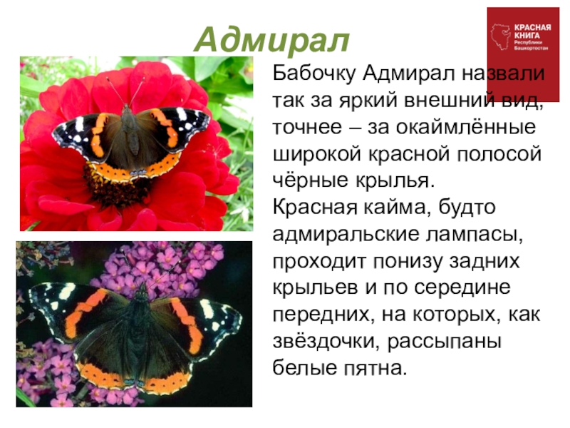 Бабочку Адмирал назвали так за яркий внешний вид, точнее –