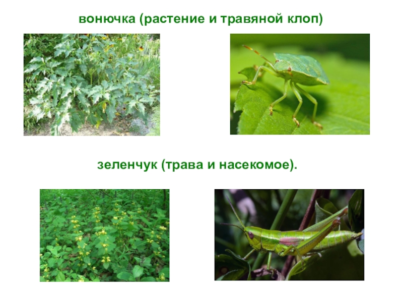 зеленчук (трава и насекомое).