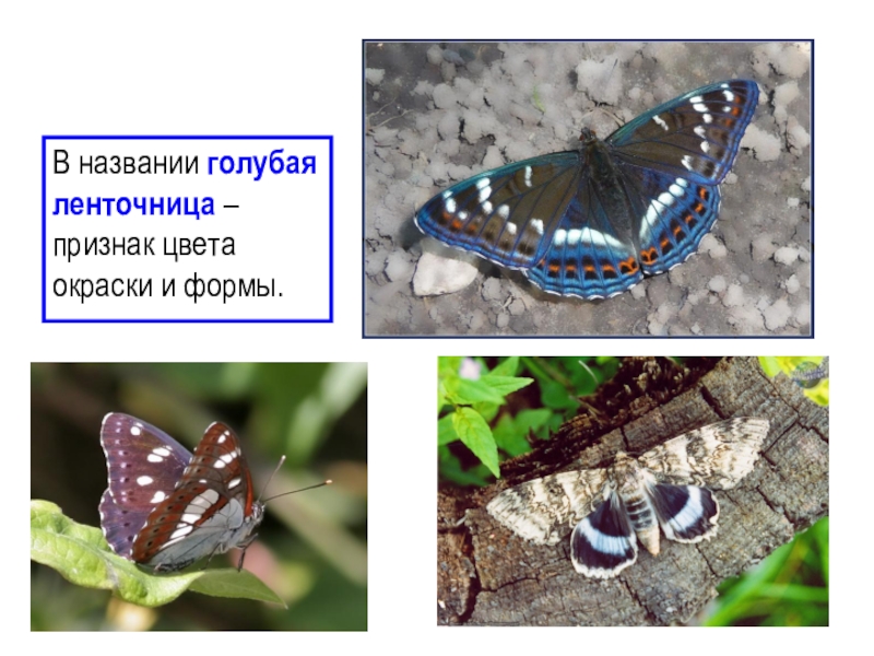 Слайд 20В названии голубая ленточница – признак цвета окраски и формы.