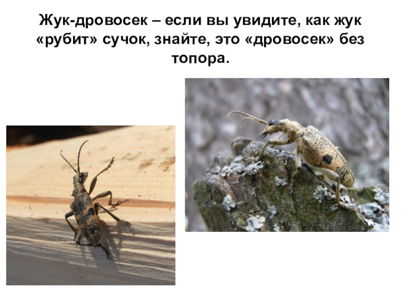 Слайд 25Жук-дровосек – если вы увидите, как жук «рубит» сучок, знайте, это