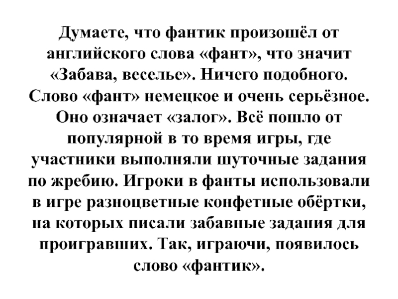 История создания фантика