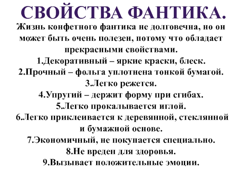 Свойства фантика.