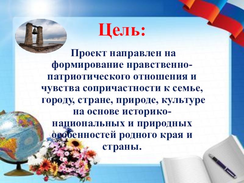 Проект направлен на формирование нравственно- патриотического отношения и чувства сопричастности