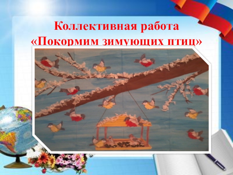 Слайд 18Коллективная работа «Покормим зимующих птиц»