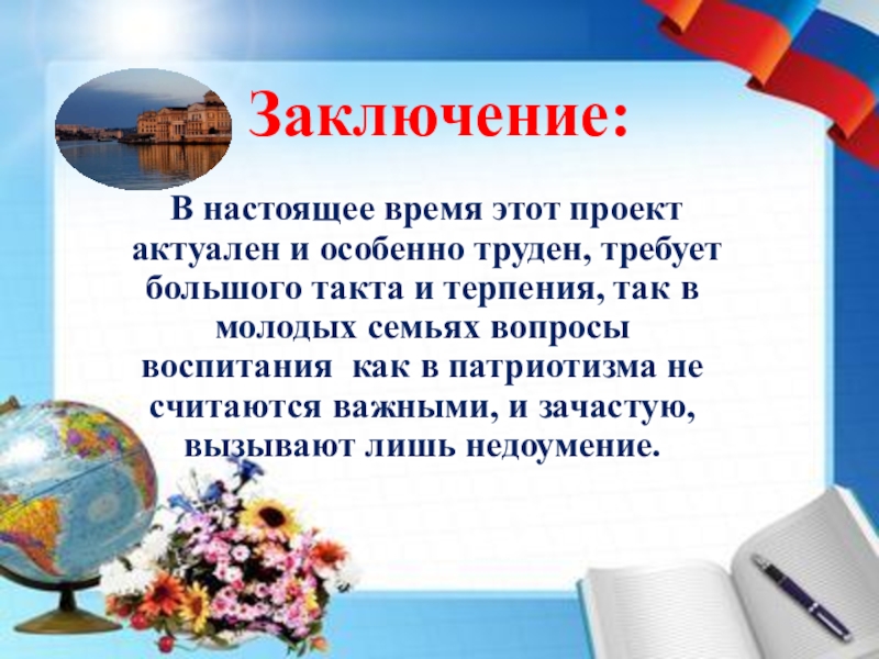 большого такта и терпения, так в молодых семьях вопросы воспитания как в патриотизма не считаются важными, и зачастую, вызывают лишь недоумение.