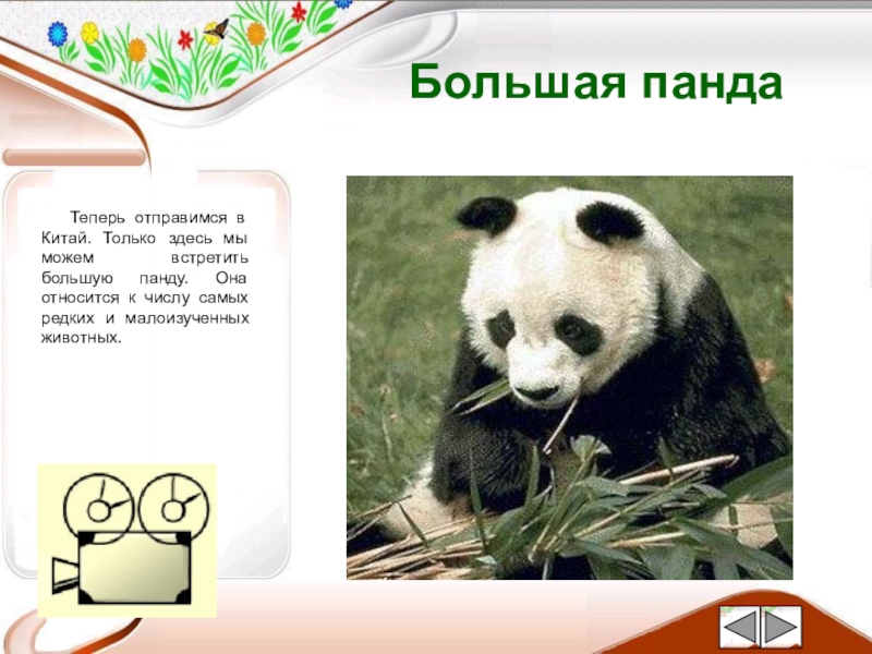 Теперь отправимся в Китай. Только здесь мы можем встретить большую панду. Она относится к числу самых редких и малоизученных животных.