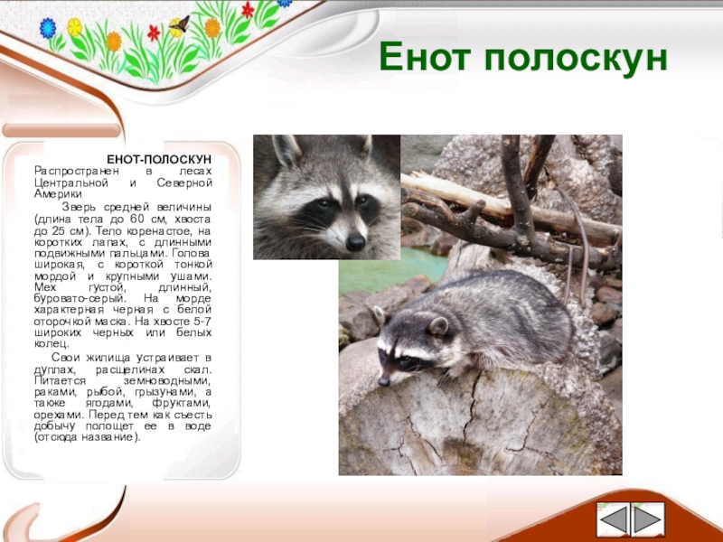 ЕНОТ-ПОЛОСКУН Распространен в лесах Центральной и Северной Америки