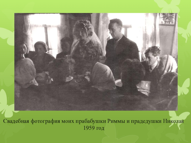 Слайд 8Свадебная фотография моих прабабушки Риммы и прадедушки Николая
