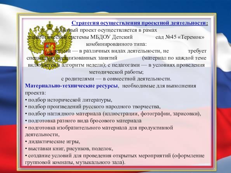 Данный проект осуществляется в рамах педагогической системы МБДОУ