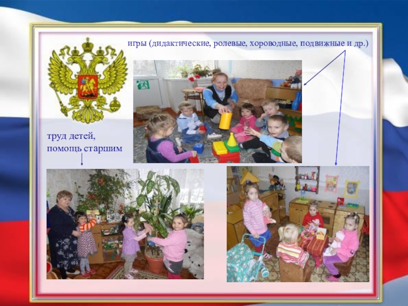Слайд 21игры (дидактические, ролевые, хороводные, подвижные и др.)