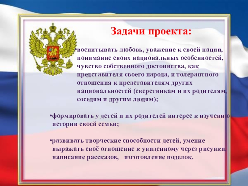 воспитывать любовь, уважение к своей нации, понимание своих национальных особенностей, чувство
