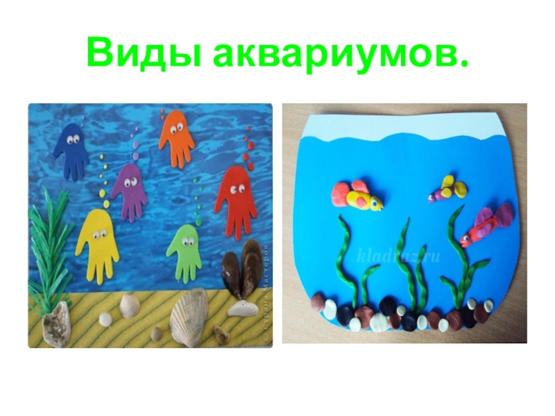Слайд 3Виды аквариумов и их обитатели.