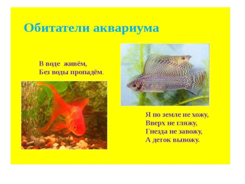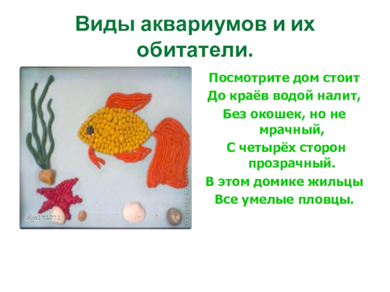 Виды аквариумов и их обитатели.Посмотрите дом стоит До краёв водой налит, Без окошек, но не мрачный, С