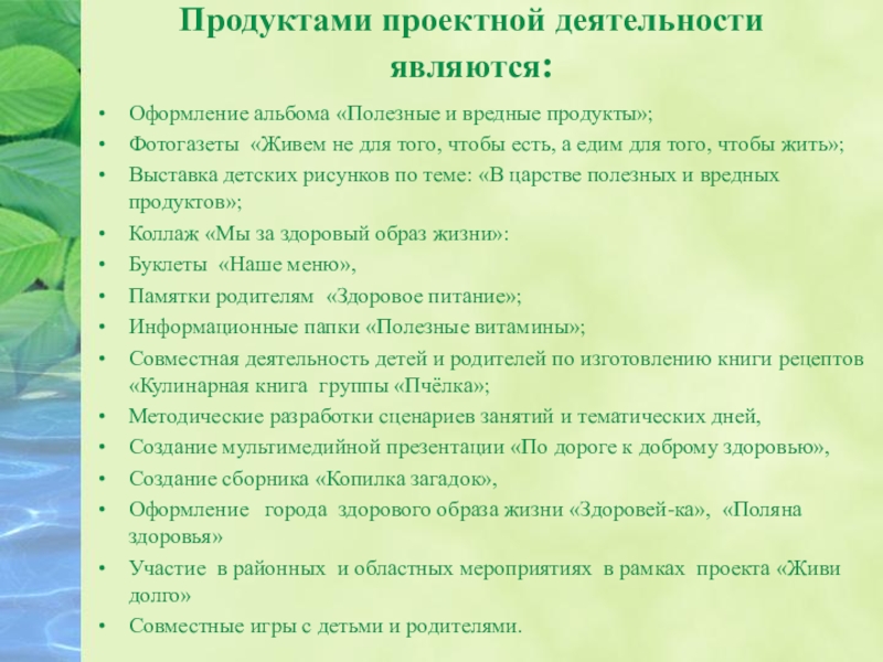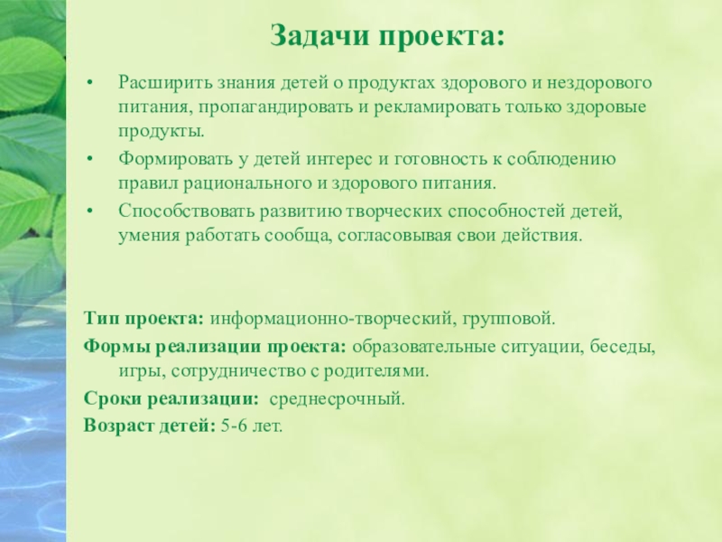 - Информационно-творческий проект "Здоровое питание – залог здоровья»