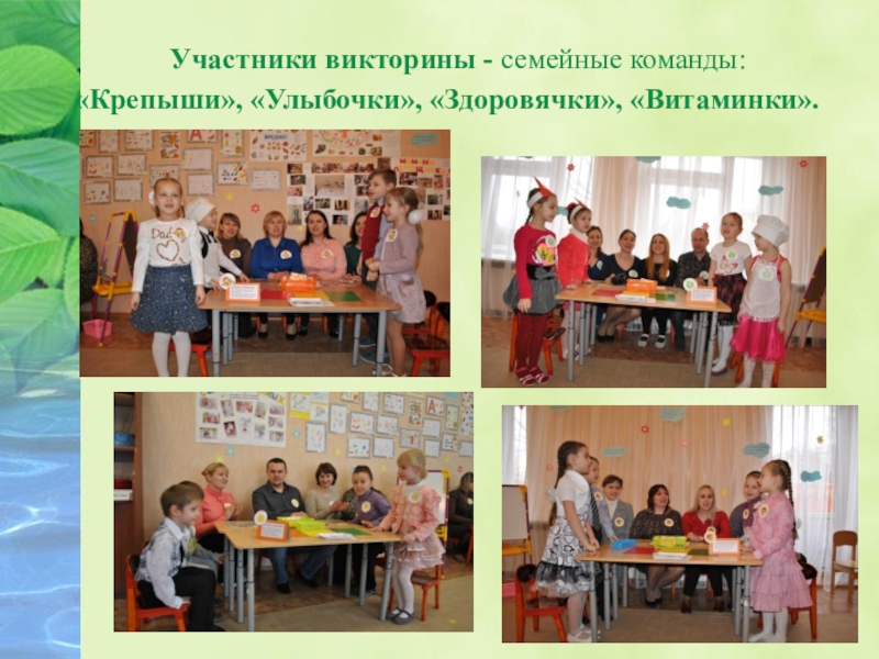 Слайд 28 Участники викторины - семейные команды: «Крепыши», «Улыбочки»,