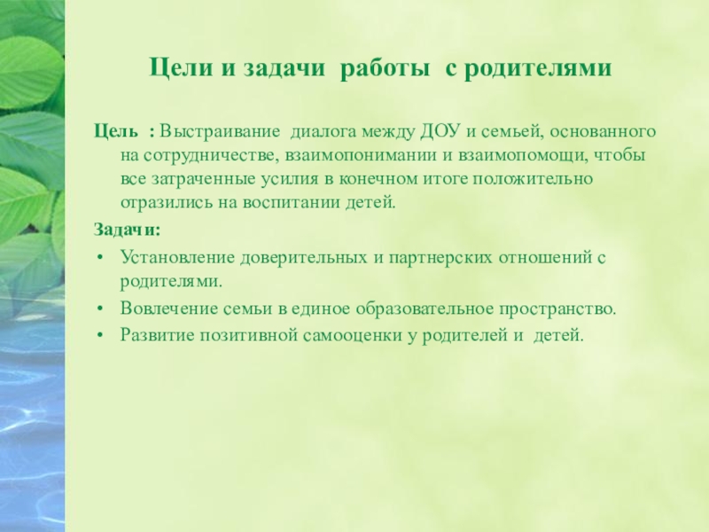 ДОУ и семьей, основанного на сотрудничестве, взаимопонимании и взаимопомощи, чтобы все затраченные усилия в конечном итоге положительно отразились на воспитании детей.