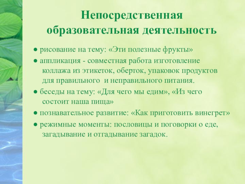 ● беседы на тему: «Для чего мы едим», «Из чего состоит наша пища»
