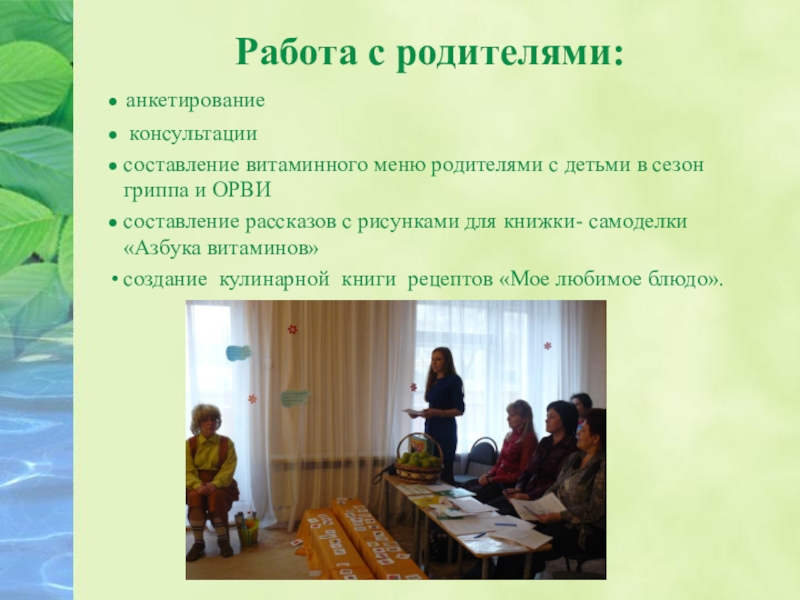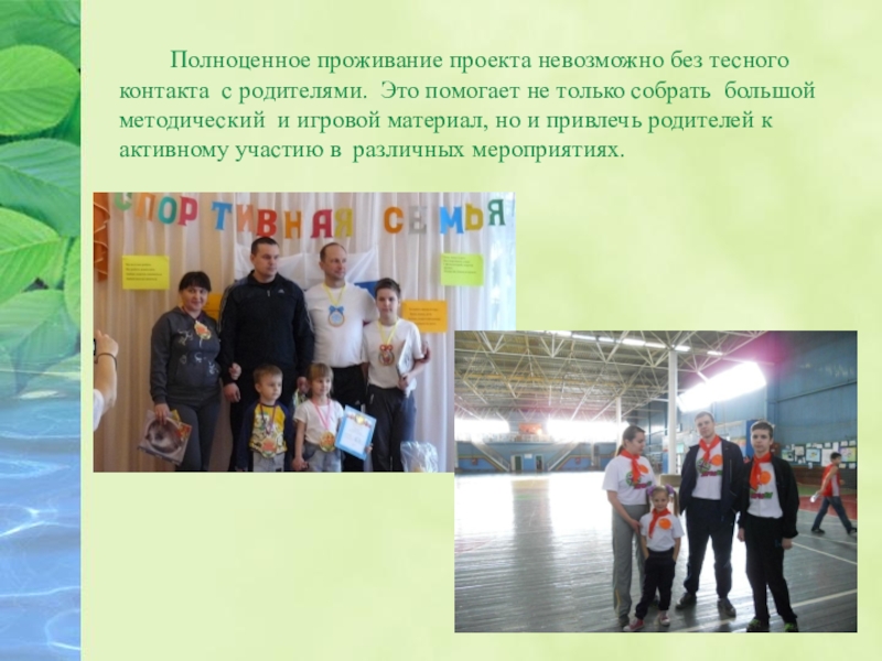 с родителями. Это помогает не только собрать большой методический и игровой материал, но и привлечь родителей к активному участию в различных мероприятиях.