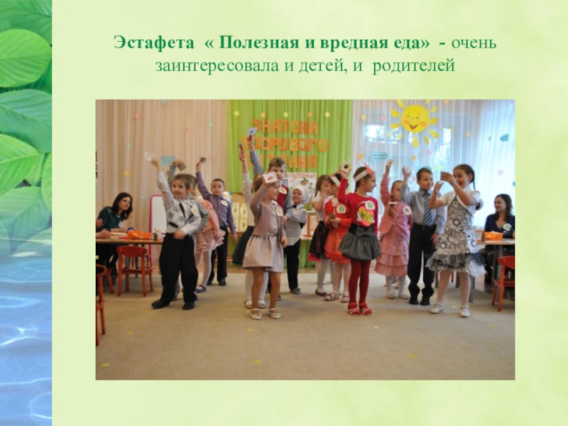Слайд 29Эстафета « Полезная и вредная еда» - очень заинтересовала и детей,