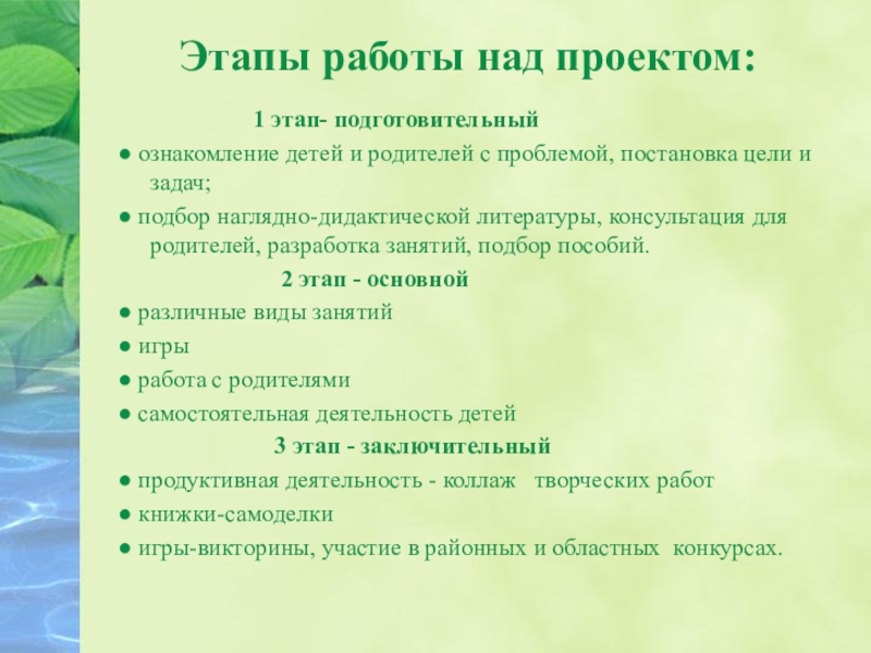 ● ознакомление детей и родителей с проблемой, постановка цели и задач;