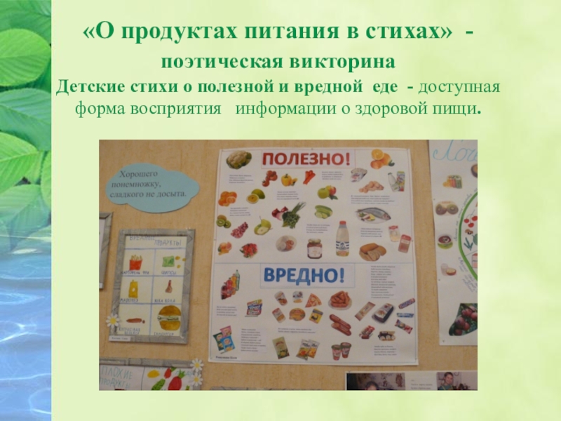 стихи о полезной и вредной еде - доступная форма восприятия информации о здоровой пищи.