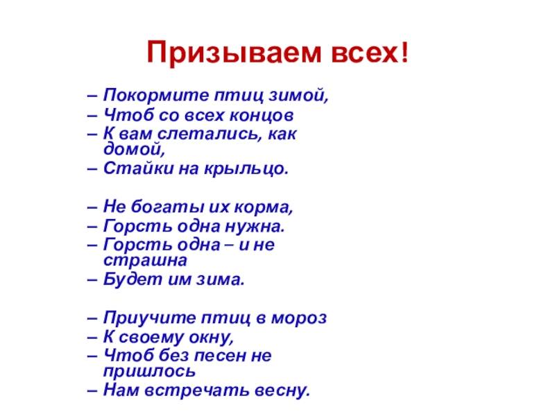 Кормите птиц регулярно.