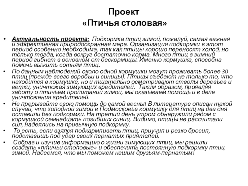 «Птичья столовая»